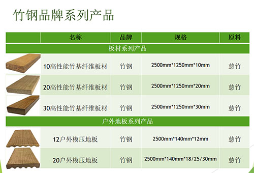 竹鋼采用純自然慈竹經酚醛樹脂熱壓膠合而成,是將竹材重新組織,加以強化成型,具有高強度、低碳環保、高耐候性、阻燃、凈化空氣、運用壽命長等特性,被稱之為“以竹代木,以竹代鋼”。